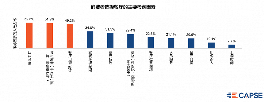 口味、食材质量、口碑是消费者选择餐厅的三大主要考虑因素。约一半消费者在选择餐厅时会考虑食物的味道,食材的质量,餐厅的口碑;而就餐环境/氛围、菜品特色、价格/性价比等是较为次要的考虑因素。消费者茶饮点单习惯不断向线上迁移。在线下门店的引导以及在电商外卖平台的发展背景下,消费者的点单习惯不断向线上迁移。