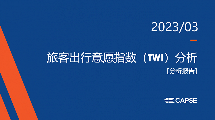 CAPSE发布《2023年3月旅客出行意愿指数(TWI)分析报告》,报告显示:2023年3月份旅客TWI环比2月份有所上升,环比2月份上升12%,近2个月旅客出行意愿持续提升;进入后疫情期,旅客商务出行意愿持续提升,旅客旅游出行意愿相对平稳;3月份计划商务出行旅客占比上升,计划旅游出行旅客占比环比持平,以返乡、探亲为主的其他需求出行旅客占比环比有所下降。