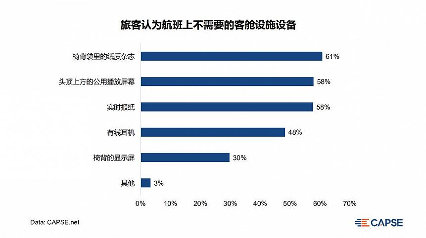 机上商业生态格局正迎来新变革。过去,翻阅机上杂志、观看公用播放屏等成为无数旅客打发机上时光的最佳选择,如今,传统机上娱乐时代可能一去不复返——超过半数旅客认为航班上不再需要纸质杂志、公用播放屏和报纸。