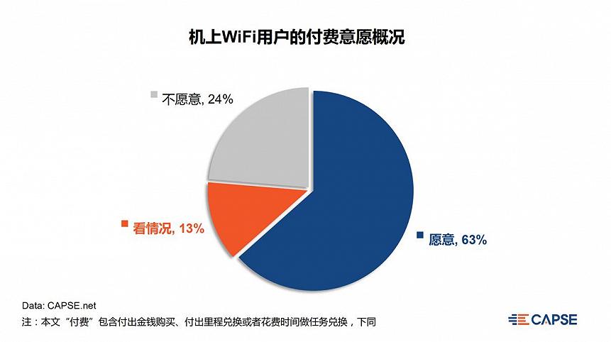 有偿机上WiFi服务将成为未来的大方向,而对于机上WiFi的收费模式,国内航企仍处于探索阶段,关注旅客对机上WiFi的付费偏好,或许能成为拓展机上WiFi获益途径的重要参考。