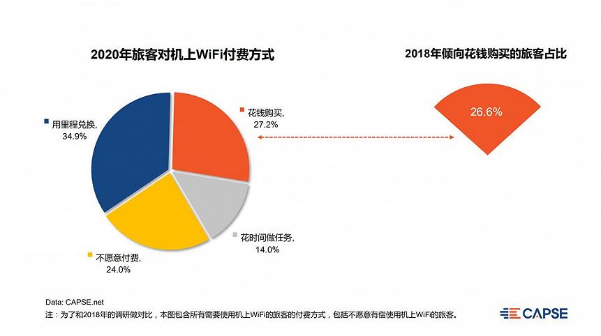 而从CAPSE调研结果来看,付费WiFi的时代或许正在开启——在需要机上WiFi的旅客中,63%的旅客愿意付费使用机上WiFi,付费形式可为金钱、里程或者时间。如何将旅客的付费意愿转化为实在的价值,这个问题的答案或许能重塑客舱商业的收入格局。
