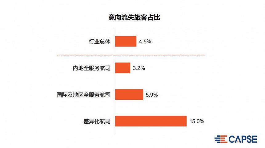 意向流失旅客:内地全服务航司表现优异,差异化航司应重点关注