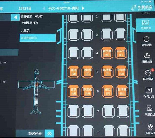 图:"华夏通程服务"FOSS系统中通程旅客座位展示 华夏航空供图