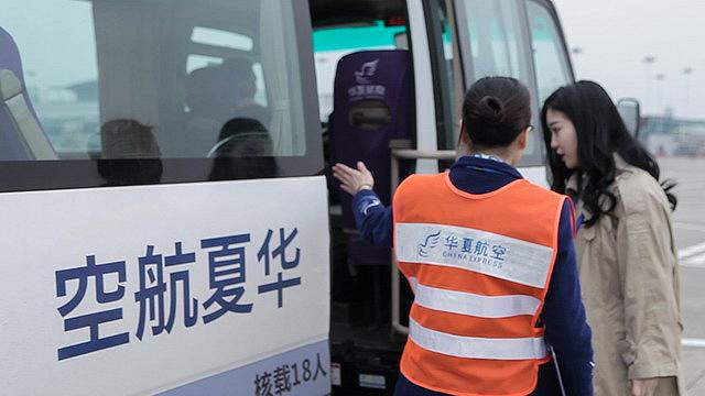 图:"华夏通程服务"通程旅客专车摆渡 华夏航空供图