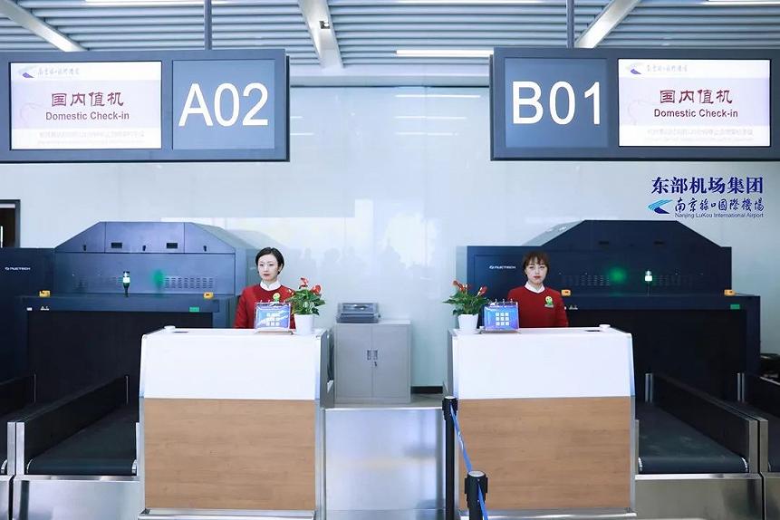 南京南站机场城市候机楼,是国内首个在市中心开通可办理值机及行李托运的机场城市候机楼。旅客到达南站候机楼后,可在人工柜台或自助设备上办理登机牌;如有行李托运的旅客,行李在加挂南站专属行李条后交给安检工作人员便可轻装上阵出行。旅客在行李通过安检后,便可直接从候机楼步行前往机场班车点或南站地铁站前往机场,省去旅客带着大包小包前往机场的烦恼。如旅客时间充裕,亦可乘坐地铁前往市区来一场惬意的南京半日游。