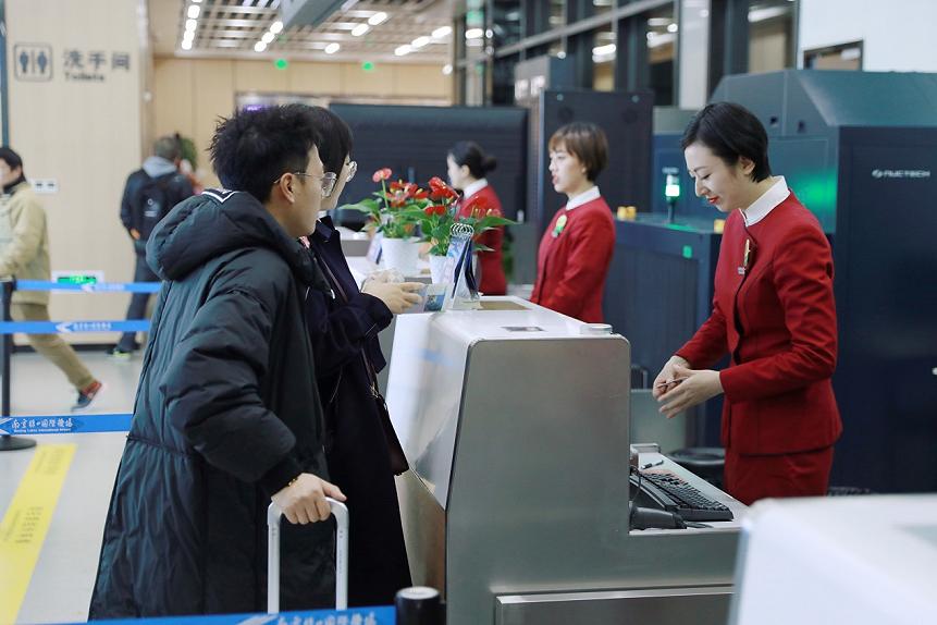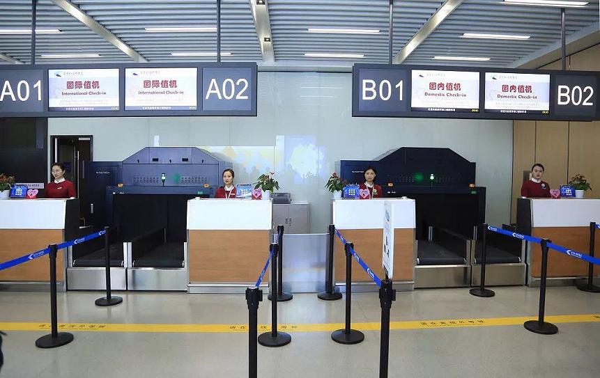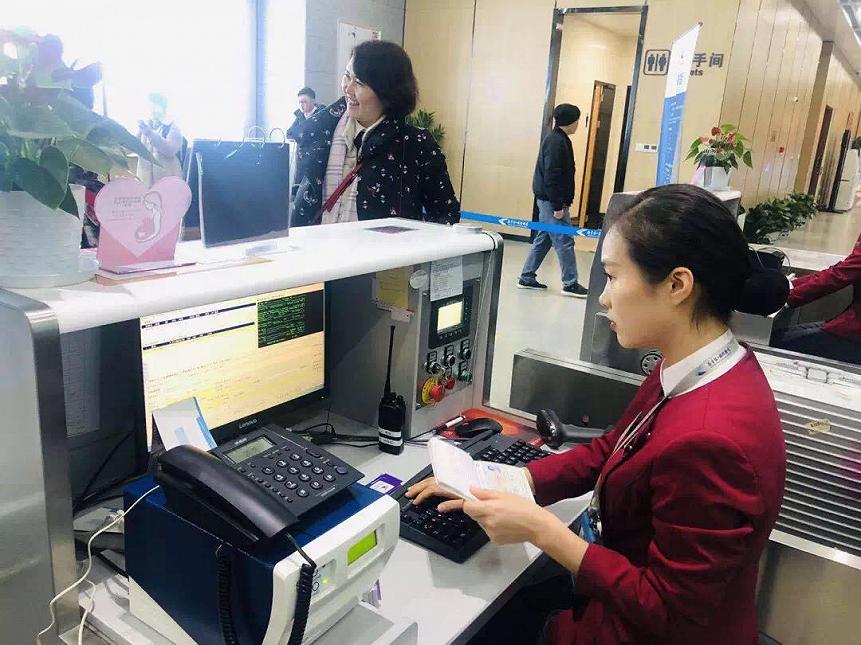 旅客到达南站候机楼后,出示有效证件,值机员将会确认航班信息,为旅客办理值机手续,打印登机牌;如有行李托运的旅客,填写行李名牌,行李在城市候机楼加挂行李条后交给安检工作人员后就可轻装上阵出行。旅客在行李通过安检后,便可直接乘坐机场班车或地铁前往机场。