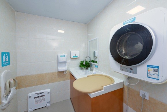 设计方面:母婴室的整体设计以用户为导向,符合人体工程学,包括:在护理台、桌柜等嵌入式设施的高度设计上采取合理高度;提供冷热水供应水龙头设备,全部实现有37°C温水供应;配置哺乳区智能感应灯光,以调整母婴室内的灯光,母婴室整体灯光设计以暖灯光为主;配置纸尿裤售卖机,提供婴儿纸尿裤;提供量身定做的母婴座椅,均能满足母婴旅客喂养婴儿的高度需求。全方位提供细致化、智能化、人性化、优质化母婴服务。此外,母婴室内还添置了奶瓶消毒器、冲奶器、温奶器、洗衣烘干一体机、冰箱、微波炉、自动感应垃圾桶、婴儿保护座、婴儿床等设施设备,更好地满足母婴旅客实际需求,具备实用性、易用性。