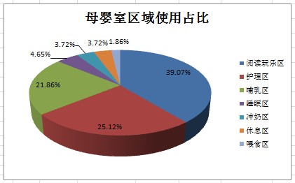 服务成效:在如今的大数据时代中,除了提供基础服务,引入智能设施设备外,还需要建立信息化管理,通过信息分析,调取并建立数据模型。据统计,自2018年11月1日试运行以来,截至2019年1月底,深圳机场旗舰体验式母婴室累计服务母婴旅客1674人次,平均接待母婴家庭旅客达18组/天。2019年2月3日,母婴室接待量创新高,服务母婴家庭旅客达31组。通过母婴室内区域使用频率对比,得出阅读玩乐区是最受欢迎的区域,使用占比达39.07%;护理区与哺乳区使用占比分别为25.12%和21.86%。