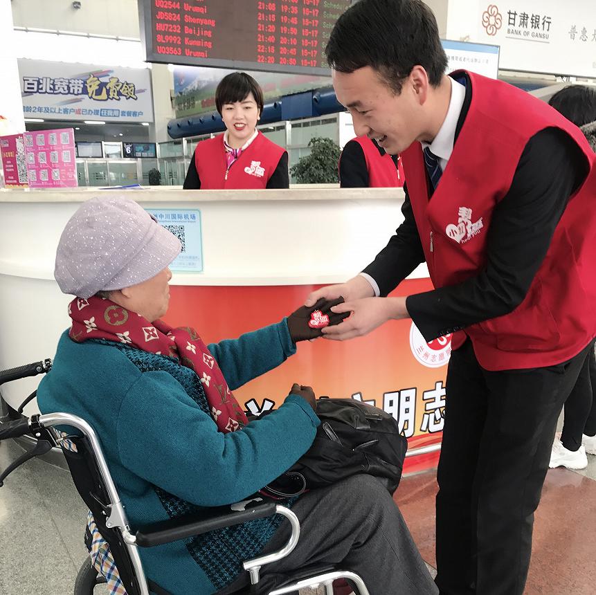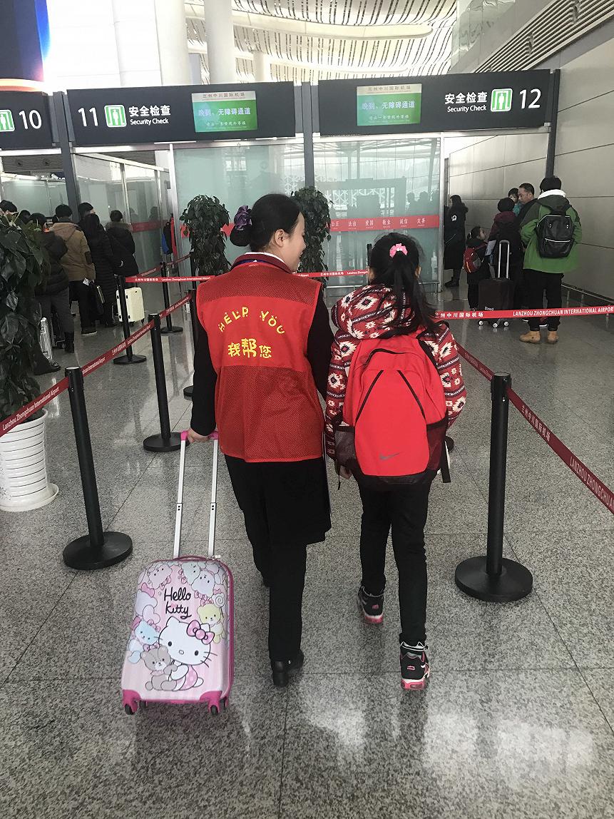 全程陪护:兰州中川国际机场“小红帮您”为轮椅旅客、盲聋哑旅客、首次独自出行的70周岁以上的老人提供全程陪护、引导服务。