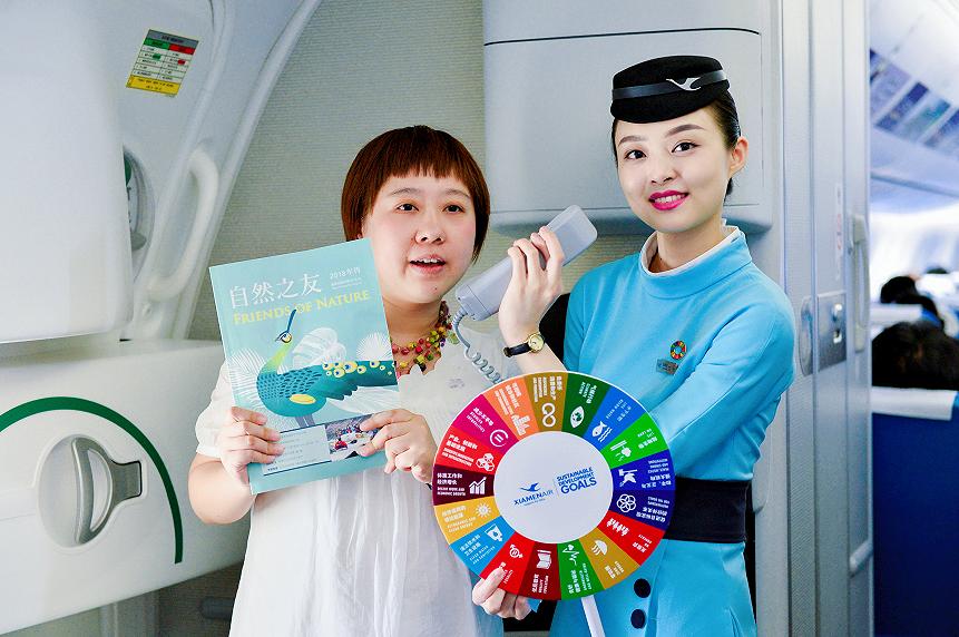 2017年2月15日,厦门航空与联合国签署了可持续发展目标合作协议,支持联合国可持续发展目标。2018年1月26日,厦航迎来了首架全球唯一经过官方确认的联合国涂装787-9飞机。作为联合国可持续发展目标的战略合作伙伴,厦航有义务传播可持续发展目标,并将可持续发展的理念融入航班服务之中,以具体的形式推动可持续发展目标的传播,实现厦航的企业责任和价值。