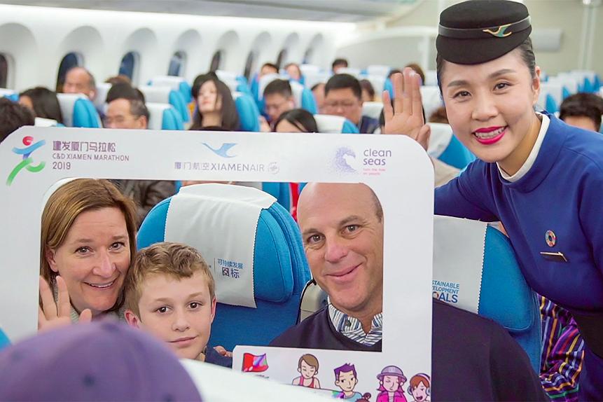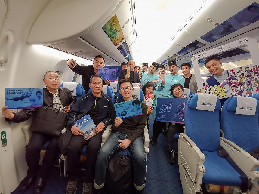 航班中,热情的旅客与大家分享自己关于保护海洋,减少塑料使用的小故事和实用经验。主题航班结束后,在厦门马拉松当日,厦航还在马拉松赛道旁搭起了加油站,为跑者加油,同时向厦门市民和游客,进一步宣传“清洁海洋”计划,呼吁更多人加入其中,共同为人类的可持续发展做出贡献。
