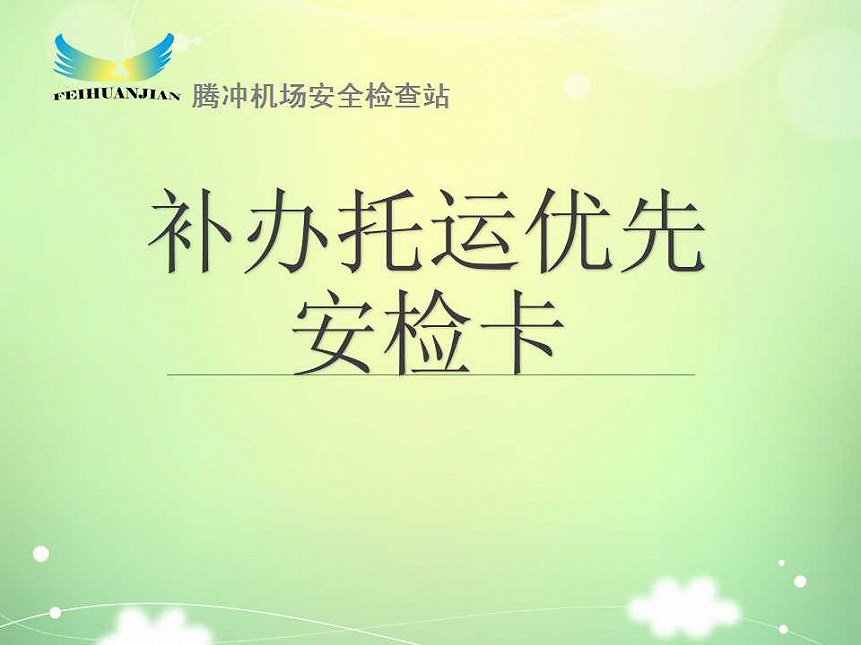 腾冲机场安检站创新制作“补办托运优先安检卡”,联合值机,当遇有出示此卡的旅客可以优先办理托运,无需排队。在通过安检时,也可以不用再排长队,可出示给维序员,由维序员引导快速通过安检,减少了旅客重新排队的等待时间。