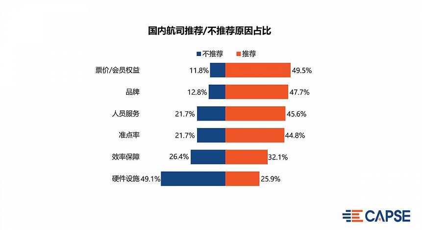 人员服务、准点率是影响国内航司旅客推荐与否的掣肘点。