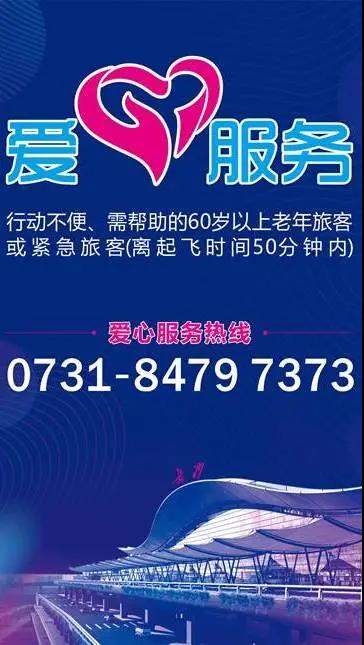2、时间紧急、行动不便、单独出行有需要帮助的老年旅客,可拨打爱心服务热线进行电话预约。(长沙机场爱心服务热线:0731-84797373)。