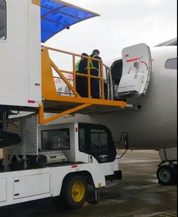 针对远机位到达轮椅旅客下机不方便的情况,长沙机场配置了残疾人登机车,保障老年人或者特殊旅客下飞机。