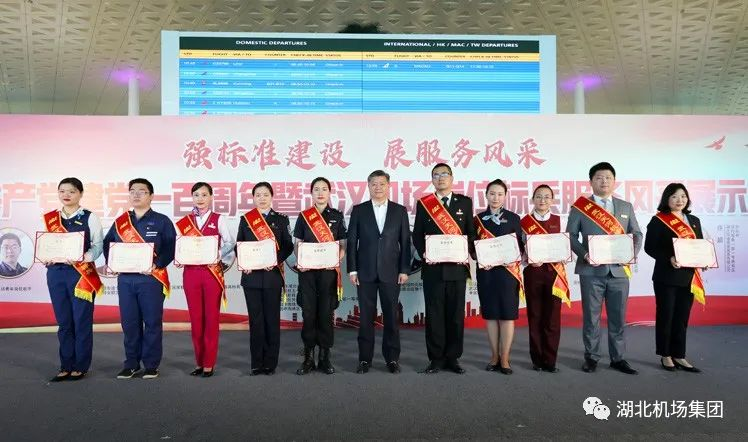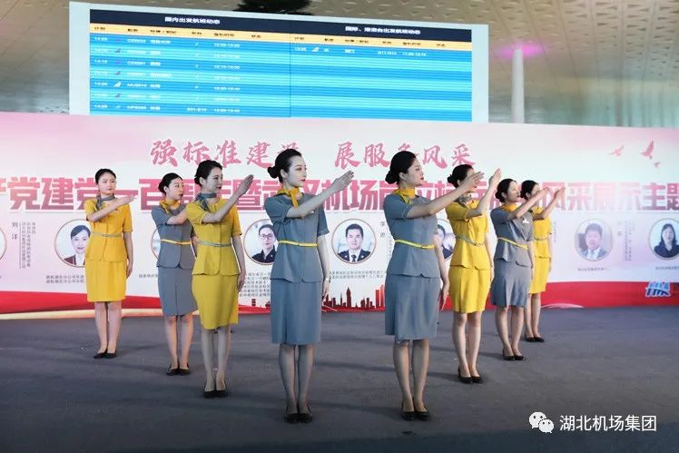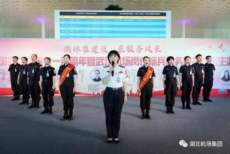 为庆祝中国共产党建党一百周年暨武汉机场复航一周年,展现员工岗位服务风采,进一步深入推广机场“楚天情”服务品牌、推进服务质量标准建设,2021 年4月30日,武汉机场在T3航站楼举办了“强标准建设,展服务风采”为主题的岗位标兵服务风采展示活动。通过展演乘机流程标准服务、岗位标兵介绍分享服务经验,向社会全面宣传“楚天情”品牌服务理念、服务承诺和服务产品。