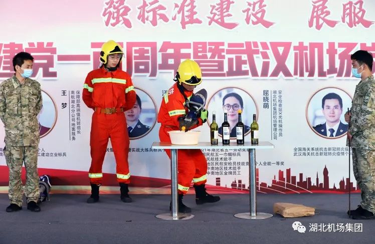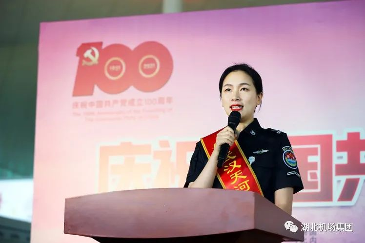 表彰结束,武汉机场一线岗工作人员进行了风采展示。武汉机场安检站以音乐情景剧的形式,向旅客生动讲述了安检员的岗位职责,以及安检流程的服务标准和操作规范。消防救护支队展示了消防战斗服快速穿脱、液压钳及灭火器的使用、心肺复苏等专业技能。武汉机场商旅公司、东航地服进行了服务手势的展演。南航地服部值机小姐姐一曲《唱支山歌给党听》,在航站楼唱响了红色主旋律,用歌声表达了对党的美好祝愿和敬仰,引来旅客驻足合唱。武汉机场四名优秀一线工作人员代表合唱的《青春》,展现了武汉机场员工锐意进取、蓬勃向上的良好风貌,更将活动现场氛围推向高潮。武汉机场工作人员规范的服务动作、优雅的礼仪形象,处处彰显了武汉机场践行真情服务认真诚恳的态度。