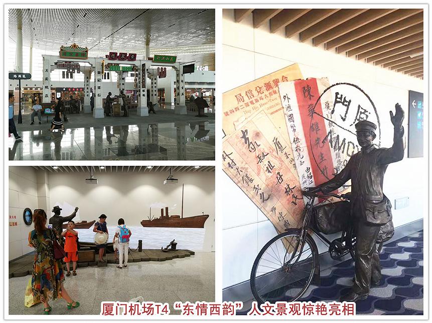1、围绕主题性,从环境装饰、人文景观、园林景观等多维度提升候机环境氛围,打造出如:闽南建筑特色、“东情西韵”人文等具有在地特色的景观。
