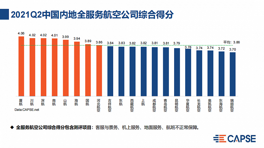 CAPSE(民航旅客服务测评)于2021年7月20日发布《2021年第二季度航空公司服务测评报告》。