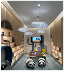 包含大堂区、行李寄存区、VIP包间、儿童游乐区、缓压区等十余个功能区,全面升级高端旅客出行体验共计可容纳约312名旅客休息,并开设了红色读书角等,投放精品图书千余册,营造文化服务氛围。
