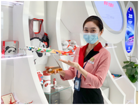 川航智慧形象展厅旨在打造川航企业形象,传递品牌文化。展厅内共分为四大板块的展示内容。分别是文创/农贸产品展示区,熊猫之眼视频宣传展示区,电子沙盘航线实时动态展示区和全息餐食展示区,其中展示区内摆放的农贸产品正是来自于脱贫摘帽乡村的土特产,将销售额反馈原产地,为贫困乡镇脱贫攻坚尽一份力。