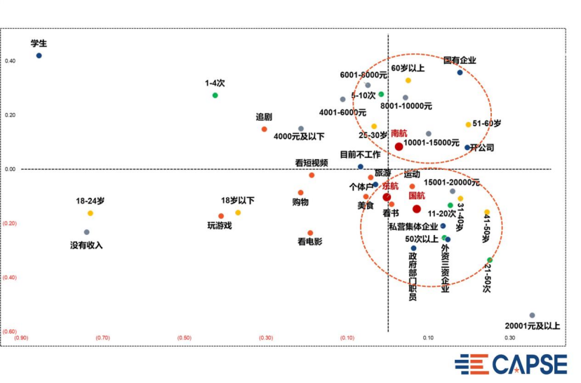 通过忠诚度细项指标-品牌偏好,可以识别航司品牌核心旅客,以三大航为例,国航、东航旅客重合度较高,南航具有一定独占性。