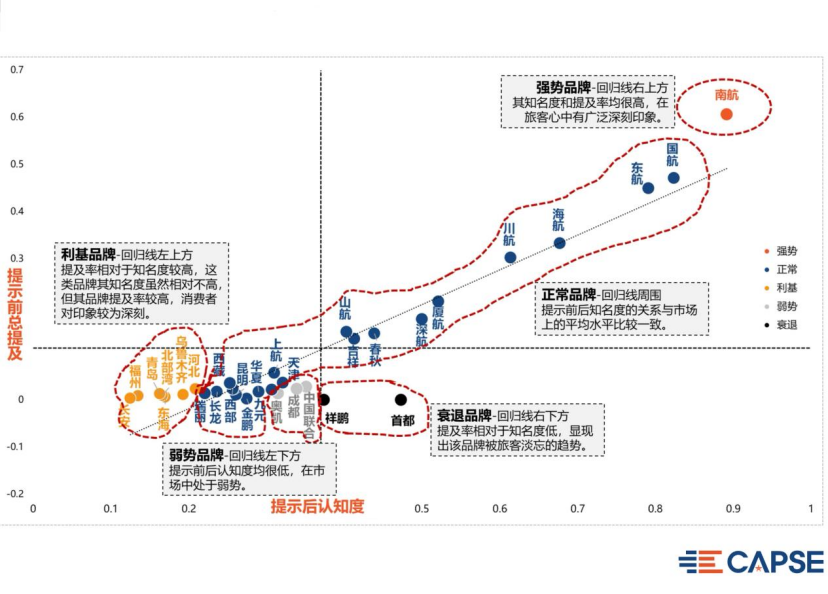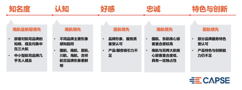 通过研究发现:我国航司服务品牌意识薄弱,品牌建设滞后于服务质量发展品牌知晓是品牌价值形成的起点,而航司服务品牌知名度恰恰是主要薄弱环节。