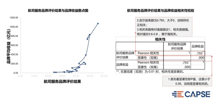 民航服务品牌价值评价指标体系围绕服务品牌核心价值展开,关注旅客感知、员工认同、管理方及社会评价。经研究分析,服务品牌价值结果与品牌收益存在显著的正相关性。