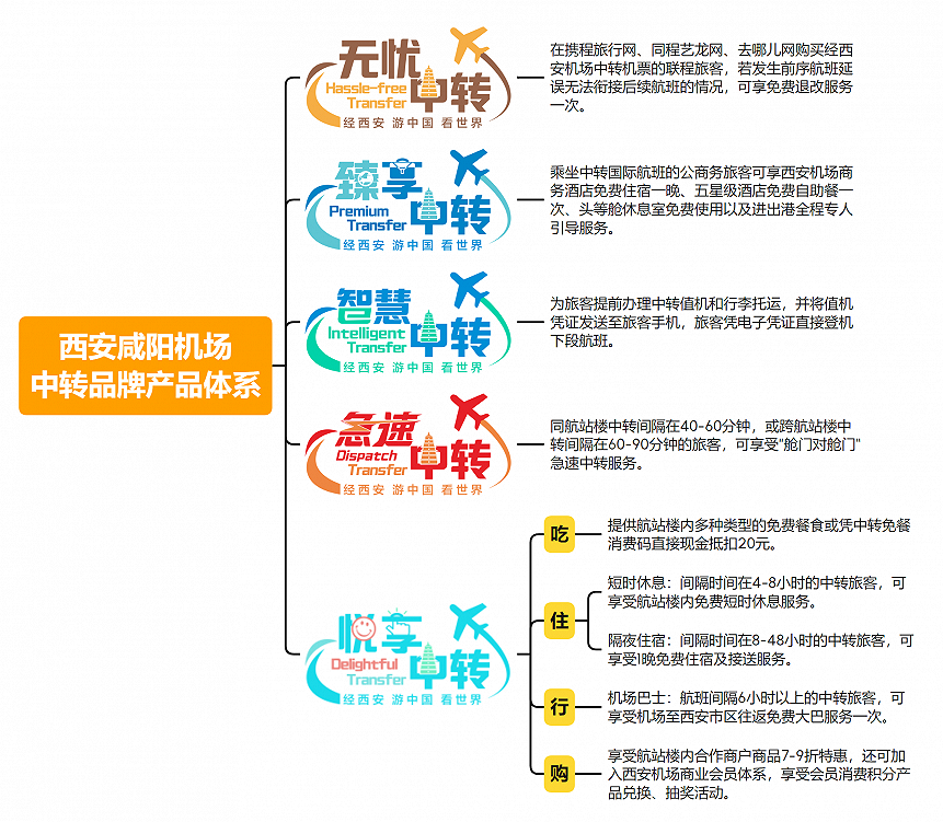 本次机场中转品牌研究中,西安咸阳机场“西悦行-经西飞”中转品牌在品牌指数、市场占有率、首选率、忠诚转化率四个排行榜上均位居榜首。民航局印发的《民航旅客中转便利化实施指南(第一版)》也收录了西安机场中转服务建设方案,作为优秀案例面向全行业推广。因此,西安咸阳机场“西悦行-经西飞”是名副其实的全国第一中转品牌。西安机场是最早开始中转品牌建设的机场之一,自2018年起,首家推出旅客跨航司中转行李免提、免二次安检等多项中转服务。由于西安处于我国地理位置中心,西安机场天然具备成为国内/国际航空枢纽的绝对优势。国内航线通达性也排名第一,因此西安机场着力打造“中国最佳中转机场”,聚焦最佳航线网络、最佳中转流程最佳中转价格、最佳中转体验最佳智慧中转等多个目标,率先推出智慧中转、急速中转、无忧中转、悦享中转、臻享中转等五项创新中转服务产品,不断丰富完善“经西飞”中转品牌体系,全方位地满足各类中转旅客的多元化服务需求。
