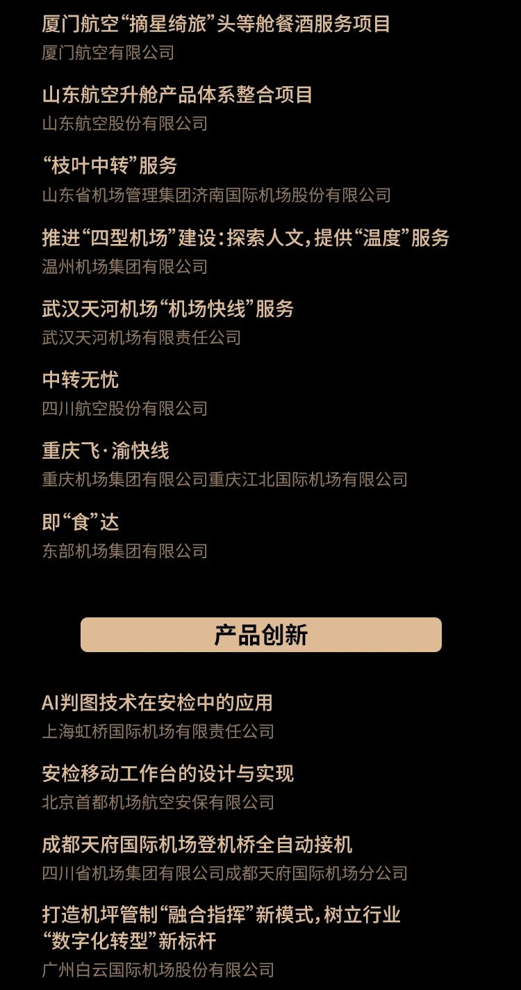 为充分展示民航创新前沿理念,激发航企创新活力,增进民航行业交流,CAPSE以打造“服务灯塔”为目标,举办创新大赛,设立创新奖的宗旨是“民航一切创新都值得被看见”。旨在表彰民航具有行业代表性的创新项目和方案,发掘行业各领域创新标杆,彰显航企创新实力和创新特色,推动行业构建更加高效的创新体系,为民航企业创新经营管理策略提供参考借鉴,助推民航创新高质量发展。