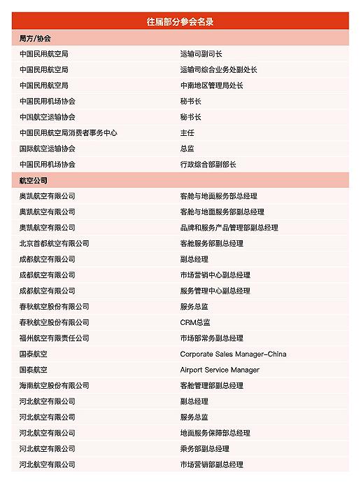 本次会议规模为400人,届时将有民航官方领导、国内外航空公司、机场、行业机构、服务供应商、主流媒体等相关单位参加。