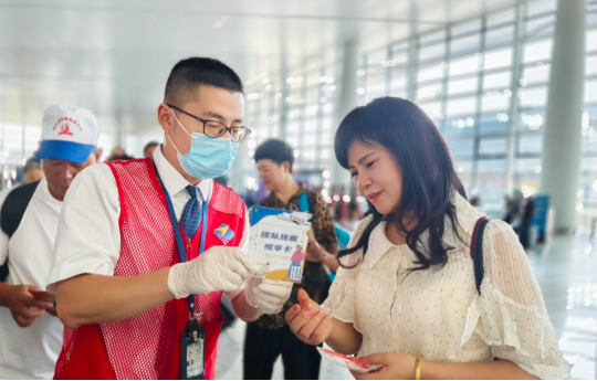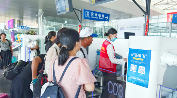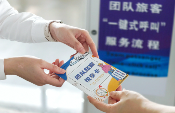 紧扣“我为群众办实事”的理念宗旨,地服公司还为团队旅客印发了团队旅客“悦享卡”,团队旅客在安检入口出示此卡可享受便捷安检团队服务。除此之外,卡片上还印有“浙里飞”二维码,旅客只要扫一扫,登入平台并可取航班信息动态推送、出行交通决策、在线值机、安检乘机物品查询等线上服务。将旅客出行密切相关的航班、行李、安检等各类服务信息咨询和相关线下服务逐步向线上转移,进一步提升了出行效率。