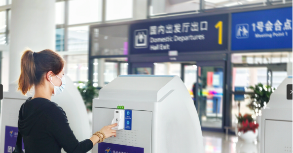 “一键呼叫”智慧按钮设置在团队自助值机设备上。它的功能和名字一样简单易懂,团队旅客需要服务时,只要按下此按钮便可与机场工作人员进行语音通话。工作人员了解航班情况后,会先行告知相关的乘机须知,让旅客提前做好办理值机手续的前置处置工作,并安排团队服务专员前往团队会合点协助旅客办理值机手续。